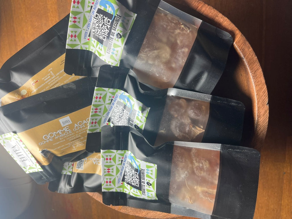 La gomme d’acacia, aussi appelée gomme arabique, est une résine naturelle issue du tronc et des branches de l’Acacia senegal. Récoltée de manière artisanale dans les zones sahéliennes d’Afrique, elle est ensuite séchée et réduite en fine poudre pour un usage polyvalent.