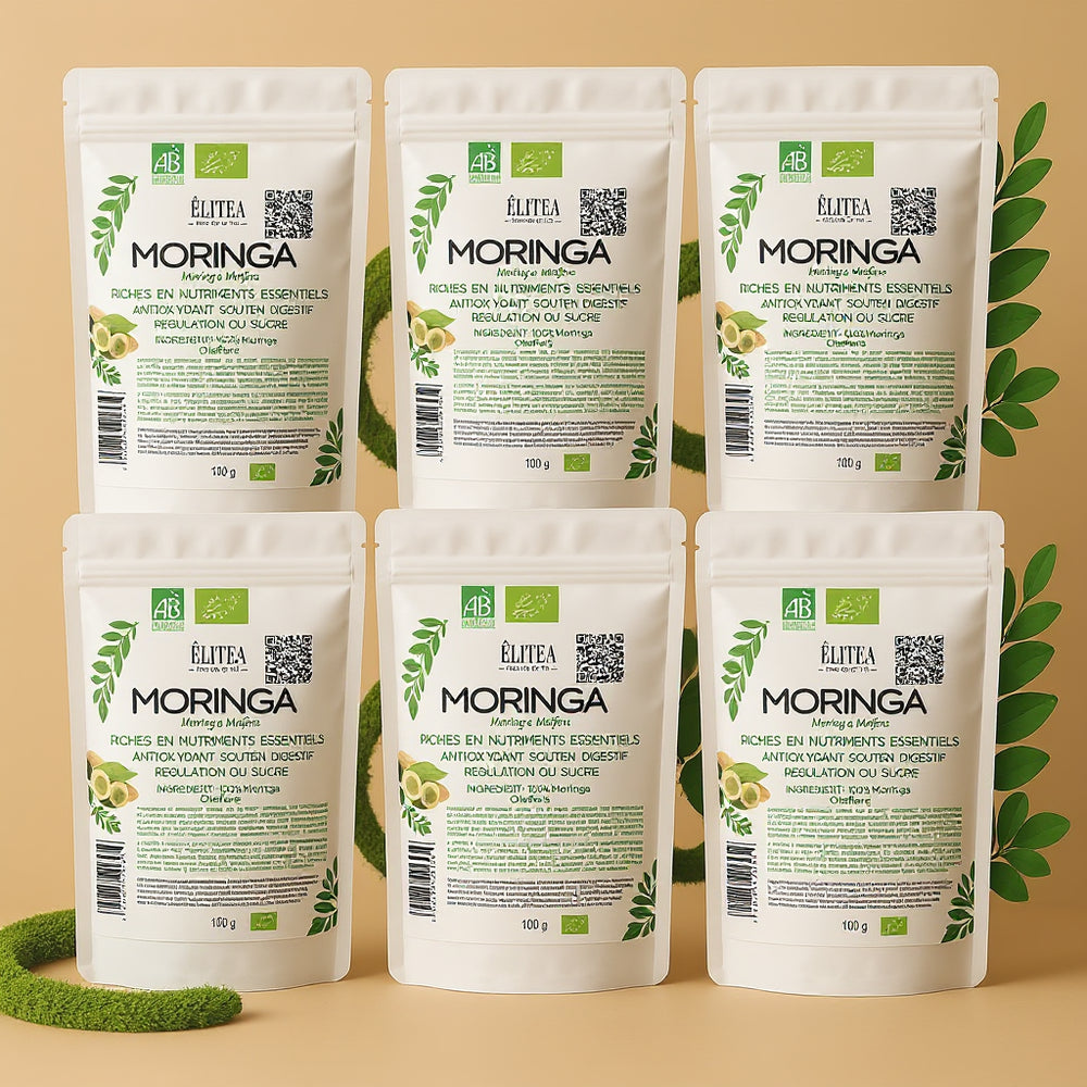 🌿 MORINGA – Lot de 12 SACHETS DE FEUILLES (100 g)